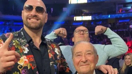 На кадрах видно, как Фьюри фотографируется со своим промоутером Бобом Арумом, которому недавно исполнилось 90 лет. Вдруг на заднем плане появляется фигура Александра, который начинает играть мышцами. Женщина, снимавшая фото, попросила Тайсона обернуться. В итоге британский чемпион WBC увидел украинского обладателя поясов WBA, WBO и IBF, и спортсмены по-дружески обнялись.