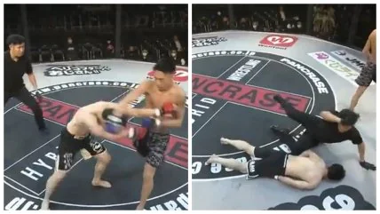 На вечере ММА от японского промоушена Pancrase Hybrid Wrestling зрители стали свидетелями убийственного нокаута.