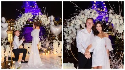 Конопля для помолвки выбрал романтическое место в Париже напротив Эйфелевой башни. Анастасия сказала "Да".