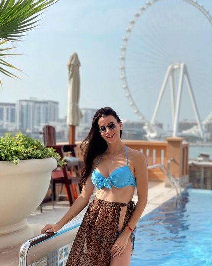 На фото супруга футболиста позирует в голубом купальнике на фоне достопримечательностей ОАЭ. За пару часов снимок собрал сотни лайков и десятки комментариев. Добавим, что кроме самих снимков Карина поделилась с подписчиками литературой для будущих мам.