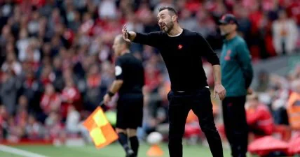 Бывший тренер донецкого "Шахтера" Роберто Де Дзерби сенсационно дебютировал в английской Премьер-лиге. Его "Брайтон" отобрал очки у "Ливерпуля" (3:3).