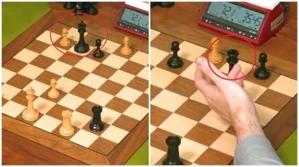 На опубликованном в Twitter видео видно, как Севян во время хода Ниманна забирает у него короля, отламывает верх фигуры и ставит обратно на доску, но на другую клетку.