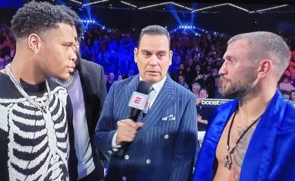Украинец прямо в ринге обсудил поединок с Девином Хэйни