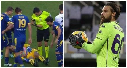 Голкипер "Специи" пытался в подкате выбить мяч из-под ног соперника и травмировал голеностоп. До конца года он играть не сможет.