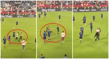 На поле выбежала девушка и попыталась добежать до Лионеля. Бедняжке не хватило всего шага, чтобы прикоснуться к кумиру. Стюарды перехватили ее в самый последний момент.