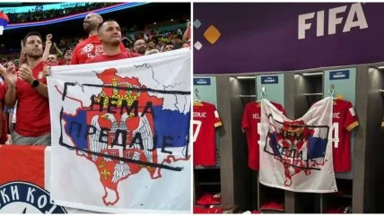 По информации источника, Федерация футбола Сербии была оштрафована на 20 000 швейцарских франков (21 300 долларов США) за политический баннер о соседнем Косово, выставленный в раздевалке перед матчем с Бразилией (0:2) в первом туре мундиаля в Катаре. На баннере была изображена карта Сербии, включающая территорию ее бывшей провинции, которая уже почти 15 лет является независимым государством (Украина не признала Косово, — ред.), и лозунг "Нет капитуляции".