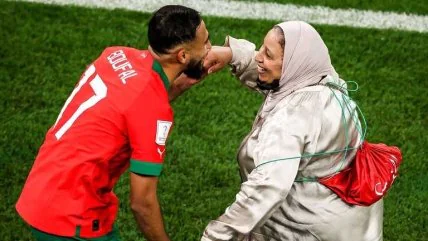 После финального свистка игрок сборной Марокко Софьян Буфаль отпраздновал этот грандиозный успех вместе со своей мамой. Он пригласил на поле мать и станцевал с ней перед трибунами с марокканскими болельщиками.