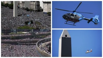 В итоге службы безопасности прервали парад и не пустили автобус к Обелиску — главному символу Буэнос-Айреса. Футболистов пересадили в вертолеты, они минут 10 покружились над фанатами и улетели к зданию футбольной ассоциации страны.