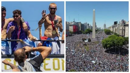 Ранее мы писали, что поприветствовать игроков вышли на улицы города порядка четырех миллионов человек. Позже автобус сборной Аргентины досрочно завершил парад из-за толпы на улицах Буэнос‑Айреса, футболистов эвакуировали на вертолетах.