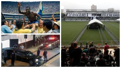 Ранним утром 2 января гроб с телом Пеле доставили на стадион "Сантос" в штате Сан-Паулу, где пройдет церемония прощания с легендарным бразильским футболистом. Пеле умер 29 декабря в кругу семьи.