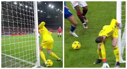 Вратарь после удара Нила Мопе пропустил мяч между ног, стоя возле штанги. Поведение Де Хеа и правда выглядело странным, на что и указал Кин.