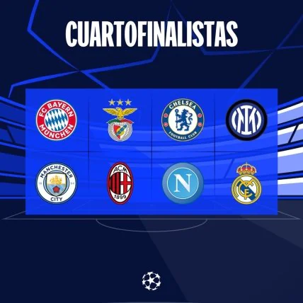 В число участников четвертьфинала вошли итальянские "Милан", "Интер" и "Наполи", английские "Челси" и "Манчестер Сити", испанский "Реал", немецкая "Бавария" и португальская "Бенфика".