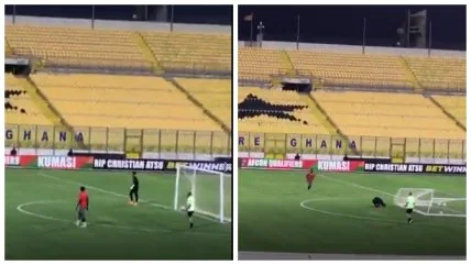 Об этом сообщает besoccer. Пугающий момент с кипером произошел во время тренировочного матча на стадионе "Баба Яра" в Кумаси.