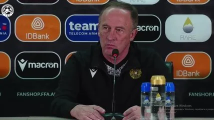 Соответствующее видео доступно на YouTube-канале Федерации футбола Армении. Украинский специалист отказался отвечать на вопрос журналиста, почему он не заменил Тиграна Барсегяна в поединке.
