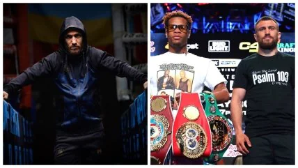 Украинский боксер, экс-чемпион в трех весовых категориях, двукратный олимпийский чемпион Василий Ломаченко (17-2, 11 КО) накануне боя за титул абсолютного чемпиона мира в легком весе с американцем Девином Хейни (29-0, 15 КО) сделал фото на фоне украинского флага. Накануне боксеры провели финальную пресс-конференцию.