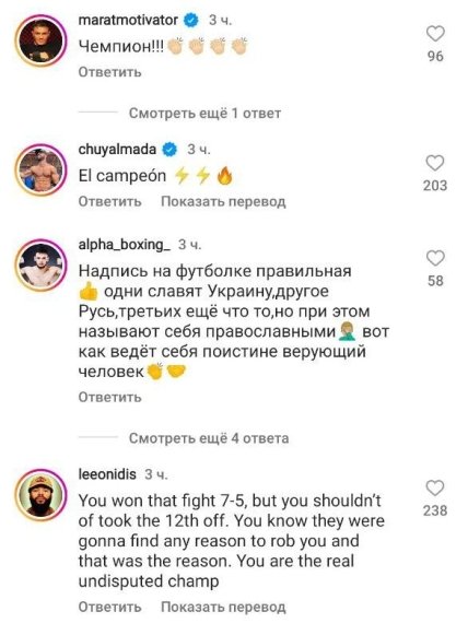 Соответствующий пост спортсмен опубликовал на своей странице в Instagram. Loma отметил, что получил много сообщений со словами поддержки, в которых говорится, что именно он выиграл чемпионский поединок. К слову, Василий записал видеообращение на фоне двух флагов: украинского и Белгорода-Днестровского (Одесская область).