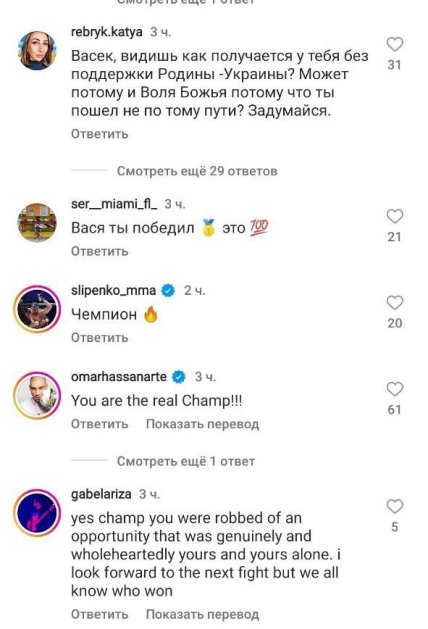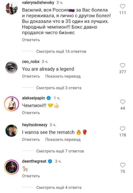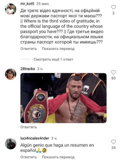 В сети неоднозначно восприняли слова боксера. Украинцы раскритиковали Василия, который сделал видеообращение на двух языках, позабыв про государственный, а вот россияне были в восторге. Англоязычная аудитория в основном писала, что Ломаченко — настоящий чемпион.