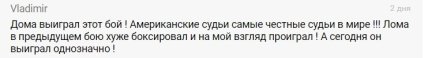 Однако российская пропаганда не дремлет и после поражения украинского боксера на ресурсе sportbox.ru выходит разгромная статья, посвященная этому событию под названием "На словах он Лев Толстой. Украинец опозорился после громких заявлений". Автор пытался выставить Ломаченко лгуном, который отпраздновал победу еще до боя, однако нарвался на критику своей же аудитории.