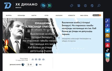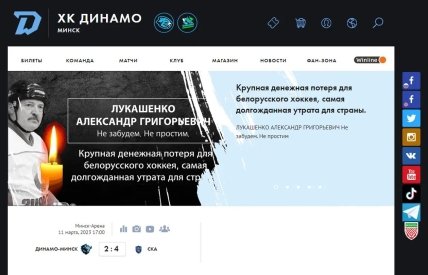 "Киберпартизаны" Беларуси взломали сайт хоккейного клуба "Динамо-Минск", на котором опубликовали некролог александра лукашенко. Накануне сообщалось о плохом состоянии здоров'я диктатора.