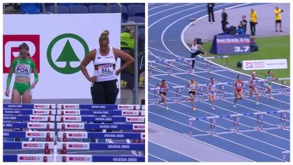 Отметим, сразу два принтера сборной Бельгии получили травму, а потому команда могла получить дисквалификацию из-за неявки на соревнования. Боумкво после одобрения тренеров выступила в забеге вместо соотечественниц. Бельгийка преодолевала дистанцию медленно, но верно. В итоге Джолиен финишировала последней, однако получила овации от публики, а также ее соперниц. Многократная чемпионка Бельгии в метании молота и ядра пробежала стометровку с препятствиями за 32.81 с.