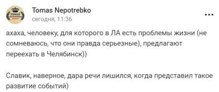 – Нет, в россии мы полноценно переехали в Москву. Брат и мама живут в Челябинске. Но когда мы хотим увидеться, они приезжают ко мне, – заявил Войнов.