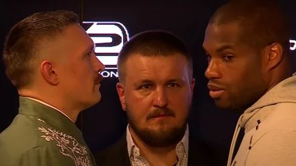 По итогам пресс-конференции Усик и Дюбуа сошлись в традиционной дуэли взглядов. Британский претендент первым отвел взгляд, что в боксерском мире означает "поражение".