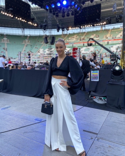 Красавица-дзюдоистка Дарья Билодид приехала на вечер бокса во Вроцлаве.