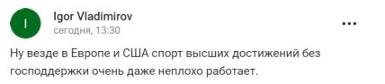 "Разумеется, развитие профессионального спорта без государства невозможно, спорта высших достижений без государства невозможно. И наше государство прилагает огромные усилия и продолжит эту последовательную линию в отношении спорта высших достижений", – сказал Песков.