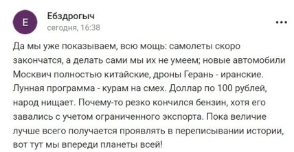 "Не просто СВО (так называемая "спецоперация" — Ред.), а у всех на 100% раскрылись глаза, и мы увидели настоящую к нам "любовь" так называемого Запада. Который нам в свое время приоткрыл щелочку, а мы думали, что нам открыли врата. И решили, что это врата рая.
