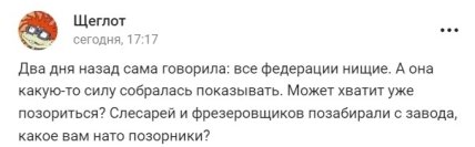 И мы должны показать во всех направлениях свою силу – и в СВО, и в экономике, и в спорте не ныть и не плакать. Не лезть в какие-то щелки, лишь бы только выступить. Нужно достойно все это пережить", – сказала Вяльбе.