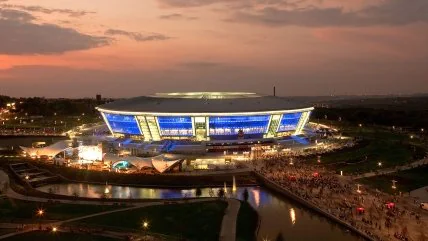 Справка: "Донбасс-Арена" — первый в Украине и Восточной Европе стадион категории "Элит" спроектирован и построен в соответствии со стандартами УЕФА, рассчитан на 52 898 зрителей. Постройка арены с благоустройством прилегающих территорий обошлась в 400 млн долларов.