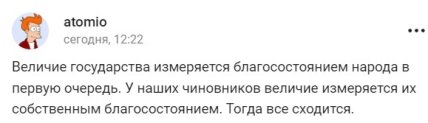 В сети раскритиковали заявление чиновника. Пользователи отметили, что величие государства измеряется благосостоянием народа.