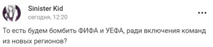 "Мы – не банановая республика, а одно из самых великих государств этого мира. Со своей конституцией, со своим законом. И мы не являемся филиалом УЕФА, ФИФА или кого‑то еще. Мы должны работать, исходя из конституционных прав наших граждан.