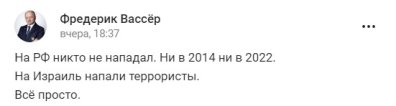 В сети отметили, что доводы Хамитова весьма слабые, ведь Израиль защищается от агрессии боевиков ХАМАС. Кроме того, Израиль, в отличие от рф, не проводит псевдореферендумы на чужих территориях.