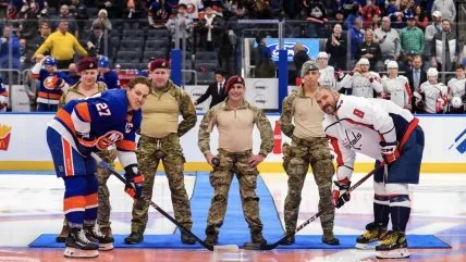 Перед игрой "Айлендерс" – "Вашингтон" (1:4) на лед вышли парашютисты 103-го спасательного отряда 106-го спасательного крыла, дислоцированного в Вестхэмптон-Бич. Один из них произвел символическое вбрасывание, в котором также поучаствовал россиянин. После вбрасывания Овечкин пожал руки военным.