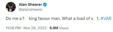 "Б***ь", я тебя умоляю! Что за х**ня, VAR?" — написал Ширер.