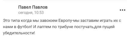 В сети лишь посмеялись над нелепостью слов депутата. Один из пользователей отметил, что Россия в свое время повернула не туда, и теперь вместо конкуренции с Китаем в экономическом росте, страна вынуждена играть в футбол с африканскими племенами. Еще один пользователь отметил, что перед Россией откроются лишь двери Гааги, где судят международных преступников.