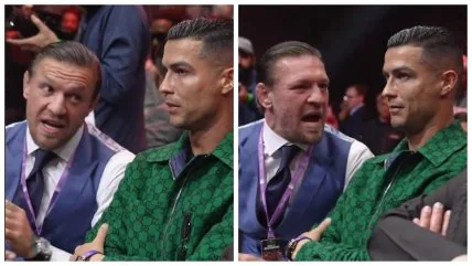 Звездный ирландец подсел к футболисту и минуту что-то рассказывал. При этом португалец явно не был заинтересован в данной беседе, на что указывало его поведение. В какой-то момент КриРо таки улыбнулся. В сети подчеркнули, что данная беседа выглядела максимально неловко.