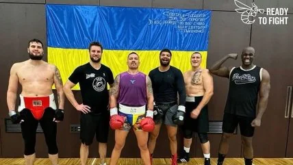 Александр на своей странице в Instagram опубликовал снимок, на котором изображены его спарринг-партнеры. На фото Усик и 5 гигантов позируют на фоне украинского флага, на котором можно заметить стихи Тараса Шевченко.