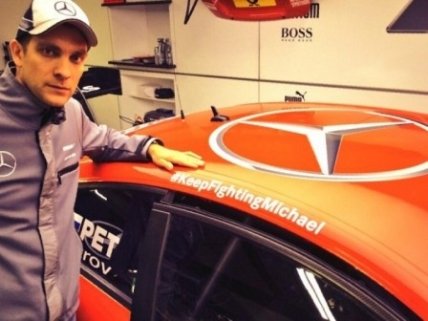 Известный российский гонщик Виталий Петров нанес на свою машину, на которой он выступает в серии ДТМ, слова поддержки в адрес Михаэля Шумахера. Теперь на автомобиле Петрова написано: "Продолжай бороться, Михаэль". Соответствующую фотографию россиянин разместил на своей странице в "Твиттере".