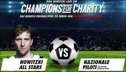 Сабине Кем: «Многие годы Михаэль был инициатором и непременным участником благотворительных футбольных матчей Nazionale Piloti, они часто играли вместе с Дирком Новицки, а теперь у нас есть возможность порадовать болельщиков и поблагодарить их за постоянную поддержку Михаэля. Мы надеемся, что они хорошо проведут время этим вечером».