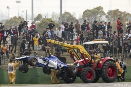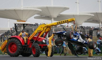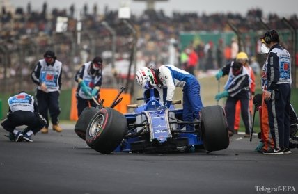Итальянский автогонщик, пилот Формулы-1 Антонио Джовинацци умудрился разбить болид своей команды "Заубер" во время квалификации Гран-при Китая.