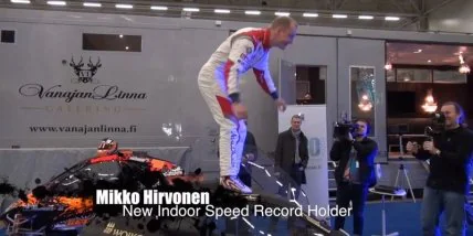 Микко Хирвонен — пилот выступающей в чемпионате мира по ралли (WRC) команды Citroen — установил новый мировой рекорд по максимальной скорости в помещении. Это достижение, которое превзошло предыдущий результат всего на 0,02 километра в час, будет занесено в Книгу рекордов Гиннесса.