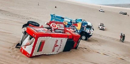 Одним из самых ярких моментов второго дня ралли-рейда "Дакар-2019" стал переворот гонщика "МАЗ-СПОРТавто" Сергея Вязовича. По иронии судьбы, он произошёл практически в том же месте, что и год назад.
