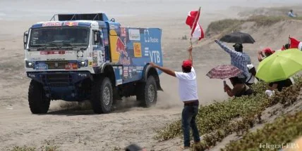 Экипаж команды «КАМАЗ-мастер» во главе с Андреем Каргиновым одержал победу на четвёртом этапе ралли «Дакар» в классе грузовиков. Таким образом, Каргинов записал в актив второй этап подряд. Второе место занял Мартин Мацик-младший, тройку лидеров замкнул Айрат Мардеев. Экипаж Эдуарда Николавева завершил день на пятой позиции, а Дмитрий Сотников стал шестым.