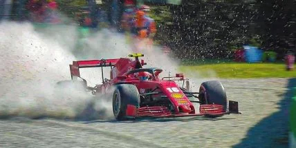 Во время Гран-при Италии гонщик Феррари Шарль Леклер на полном ходу врезался в ограждение. На 25-м кругу гонки Леклер потерял управление и врезался в ограждение из шин. Гонку пришлось остановить. Правда, Помощь с извлечением из машины не потребовалась, гонщик выбрался самостоятельно.