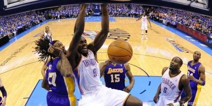 Нет сомнений в том, что передняя линия "Лейкерс" стала сильнее. Связка Ховарда и Газоля будет тем же, чем была связка Газоль-Байнум – лучшим сочетанием четвертого и пятого номеров на планете. Только… еще лучше. Но, несмотря на такой серьезный вызов, "фронткорт" "Оклахомы" способен его принять. Прогресс Сержа Ибаки в защите поражает, однако ключевым игроком "Тандер" в противостоянии с "Лейкерс" будет Кендрик Перкинс. Все помнят, что в свое время ключевым фактором перевеса "Бостона" над "Орландо" на Востоке было то, что Перкинс способен сдерживать Супермена один в один без обязательной подстраховки. И это его умение никуда не делось.