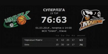 "Химик" - "Черкасские Мавпы" 76:63 (15:9, 30:12, 14:25, 17:17)