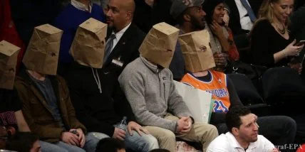 Во время матча регулярного чемпионата НБА с "Хьюстоном" пять фанатов "Нью-Йорка" надели на головы бумажные пакеты.