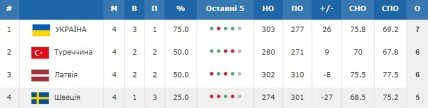 Поэтому в Украины три победы в четырех поединках. По две победы имеют Латвия и Турция. В Швеции - одна.